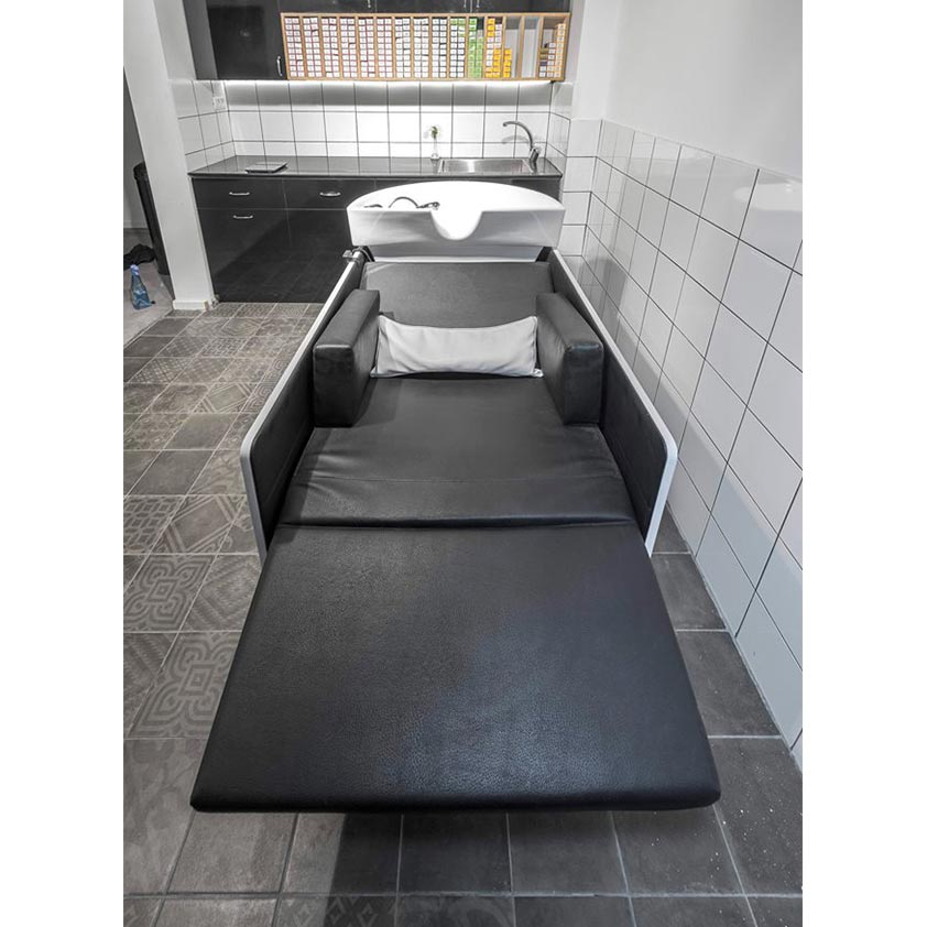 Innovativt Design: Va Pensiero Shiatsu Wood har en tilpassbar vaskebolle med vippe- og skyvefunksjon, kombinert med en ryggstøtte og sete som gir maksimal komfort. Den synkroniserte elektriske bevegelsen for benstøtten sørger for enkel justering av posisjonen, og skaper en behagelig opplevelse for kundene.
